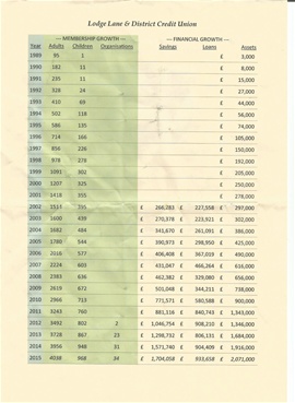 1989 The Registry of Friendly Societies officially registers the Lodge Lane Credit Union on the 25th of April. The Credit Union opens to members on 22nd of May. The first shop front is opened at 49 Lodge lane. 98 Members join by the end of the year and the first junior member in November 89. Delegates attend the North west Chapter of Credit Unions.