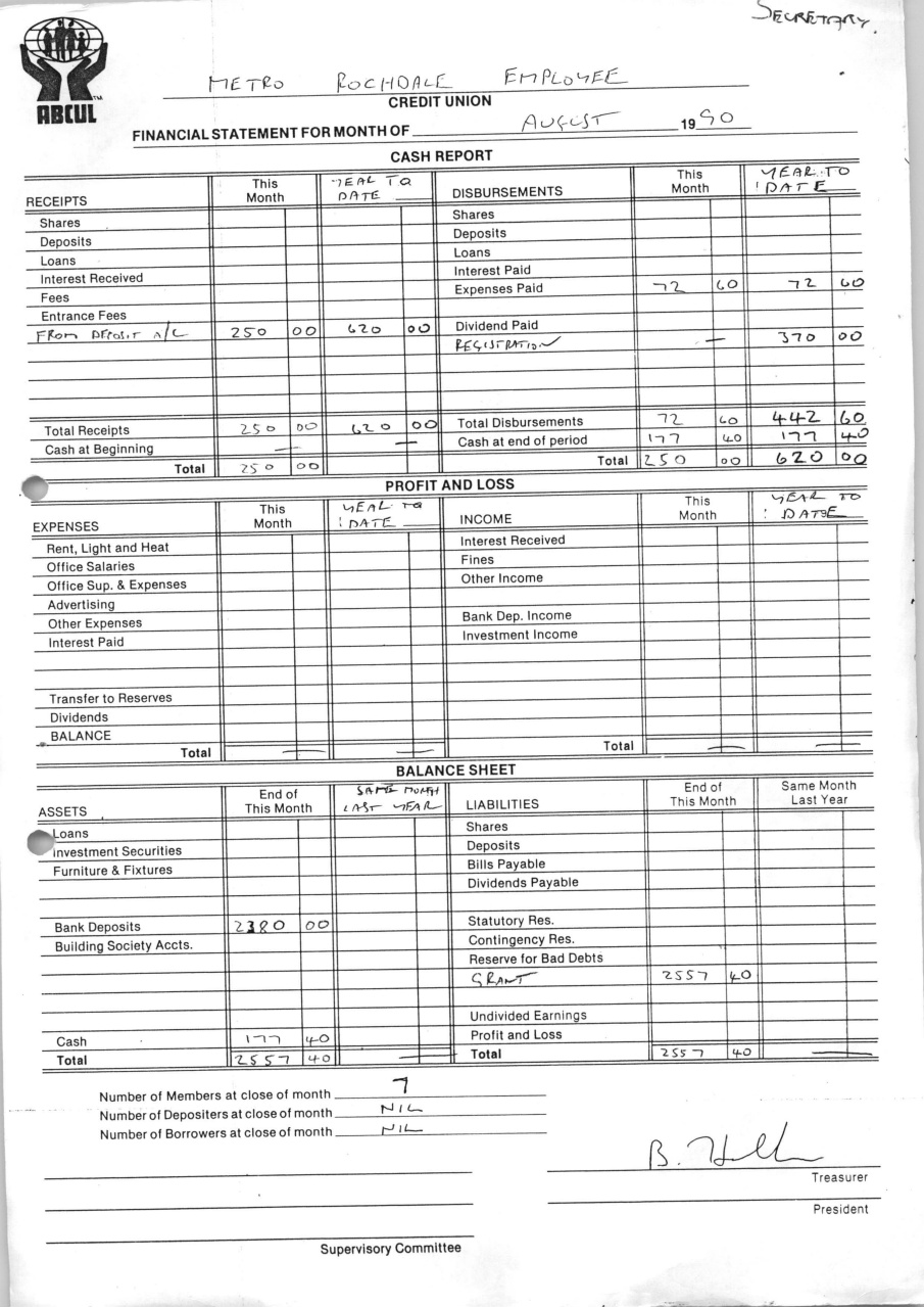 The Road to sustainability: – Annual meeting 1991 The early years the credit union auditors were Appleby and Wood of Bolton. 1993 Retired members came under discussion for continued membership alas it was not possible in those early days. 1994 saw the money laundering regulations come in to force and the credit union required a money laundering officer. The AGM that year elected to a change of Auditors. 1995 the auditors were confirmed as Beever & Struthers and have been the auditors ever since. November.